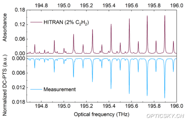 圖2.乙炔氣體寬波段雙光梳光熱光譜